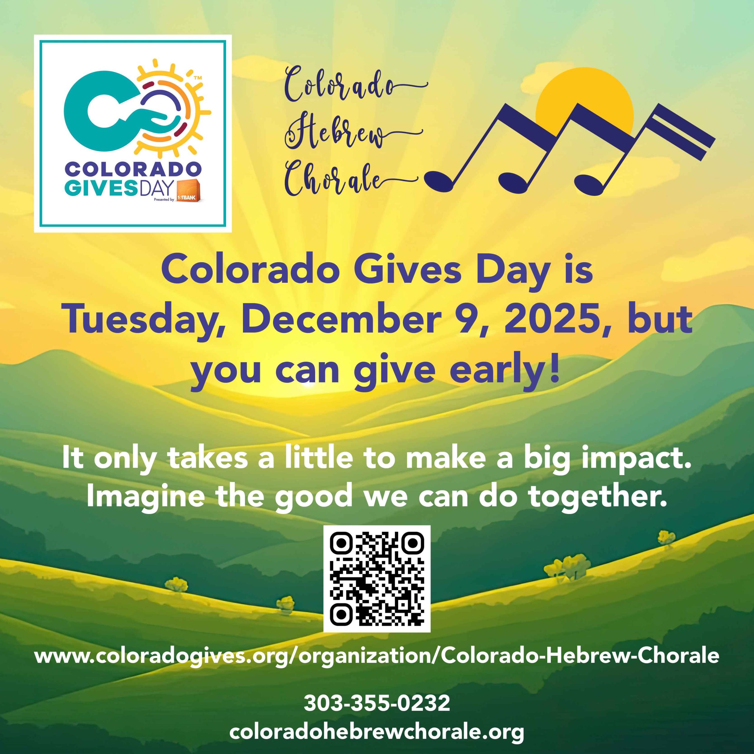The Colorado Hebrew Chorale community is devastated by the recent events in Israel and Gaza. We support the state of Israel, and our choirs will continue to rehearse and perform; that is what we can do as musicians. Through music we mourn, and through music we assert visions of a hopeful world.